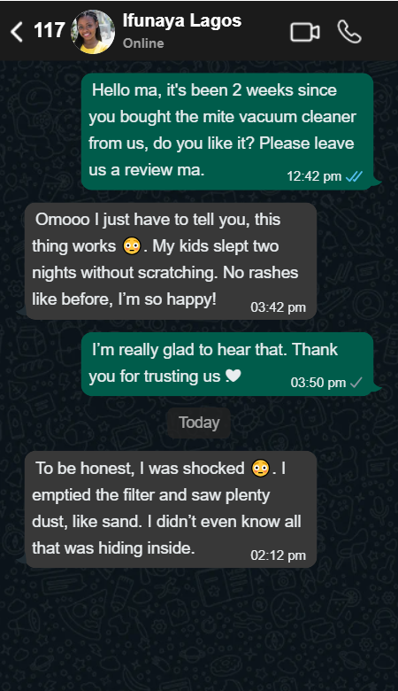We understand your concern. That’s why this product has been tested and proven effective in Nigerian homes. Thousands of families are already enjoying cleaner air, better sleep, and relief from mites. Once you try it, you’ll see the difference within days.
