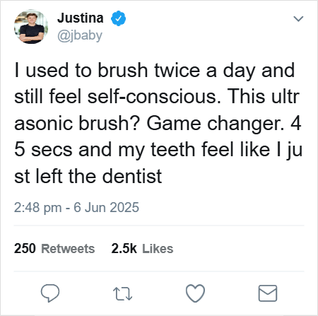 “This toothbrush made me realize self-care isn’t just about skincare or gym time, oral care is part of confidence.”