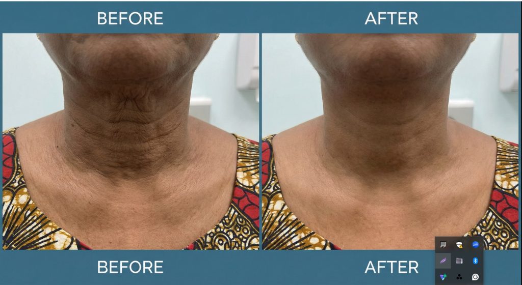 And I saw what she saw. The loose skin under my chin. The horizontal rings running across my neck. The way the skin sagged when I tilted my head down. The “turkey neck” that I had been ignoring for two years, hoping it would somehow fix itself.